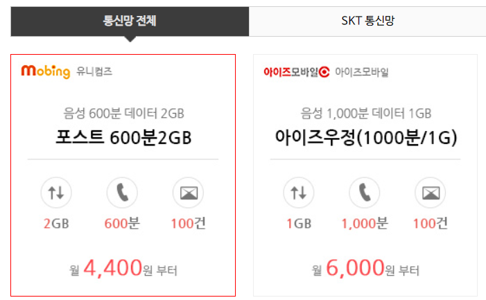 이 요금제 가장큰 특징은 매우 저렴한 요금입니다.