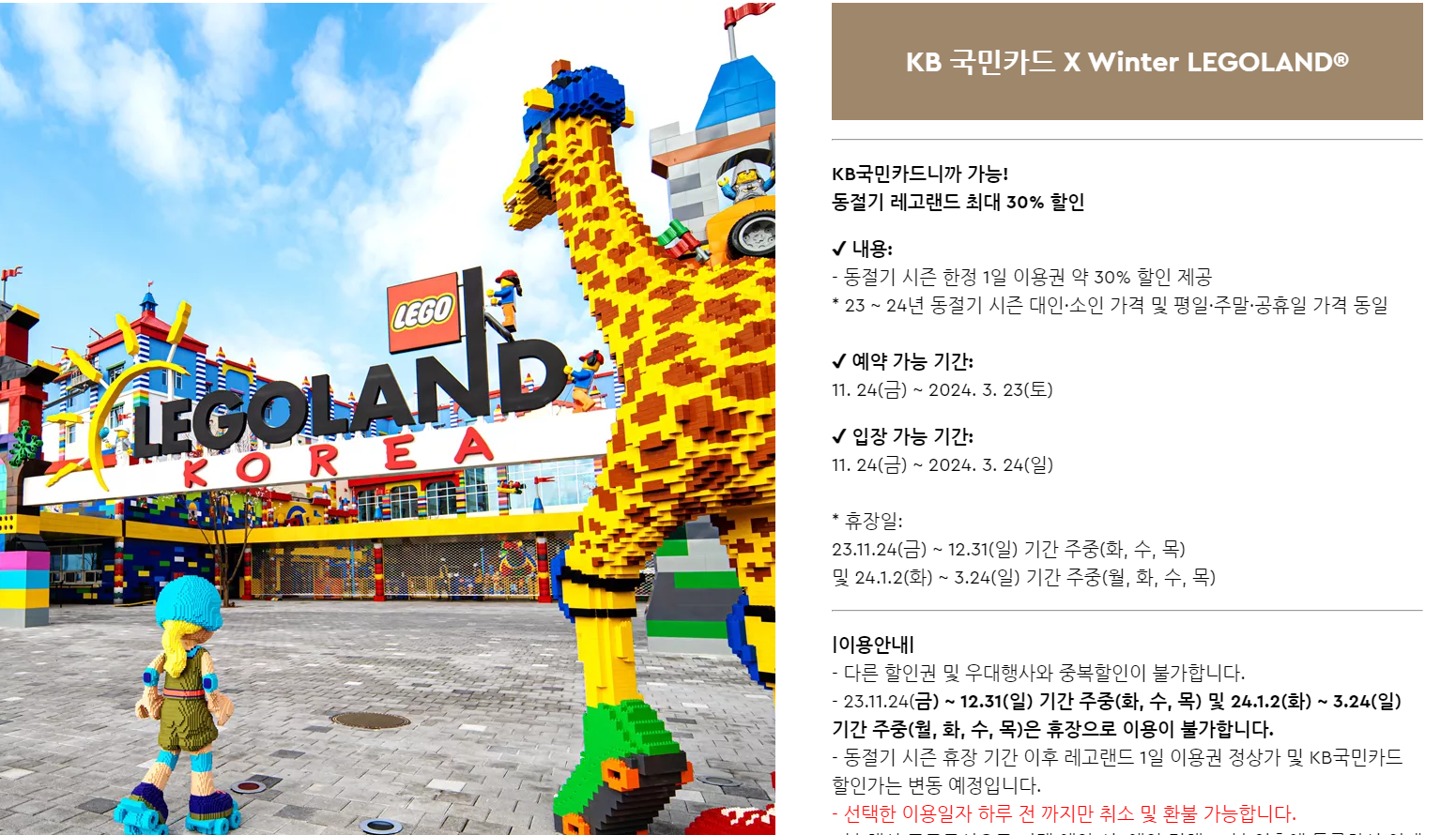춘천 레고랜드는 강원도민 할인, KB카드 할인이 가능하며, 무료 셔틀버스 이용이 편리합니다.