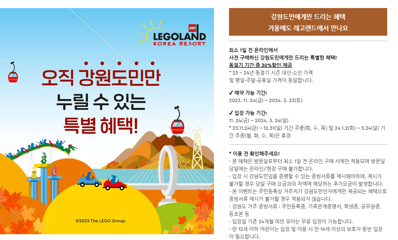 레고랜드 춘천 입장료 및 할인 혜택