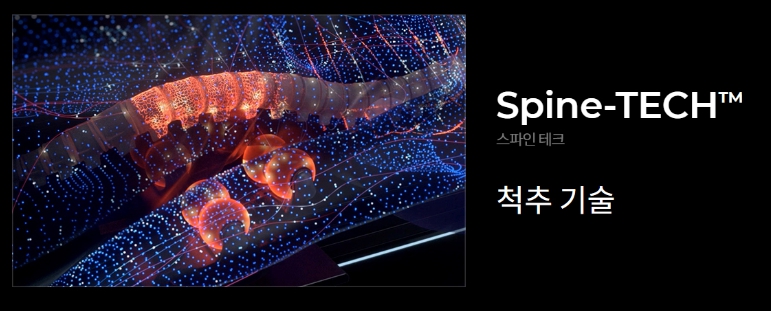 스파인테그(척추 기술)은 자동 모드를 실행하면 사용자의 체형에 맞춘 기능이 작동하여 척추 부위의 척추 포인트별 마사지 구간과 굴곡도가 자동으로 설정됩니다.