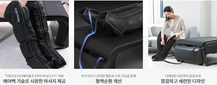 에어셀 마사지 기능을 통해 혈액 순환을 개선하며, 빠르게 또는 느리게 3단계 속도 조절이 가능합니다.