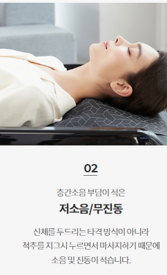 층간 소음 부담을 줄이는 저소음과 무진동 기능이 있으며, 20개의 음악을 담은 세라젬 힐링 사운드가 탑재되어 있습니다.