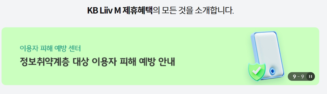 「KB Liiv M」은 KB국민은행의 혁신금융서비스로 금융권 최초로 제공하는 이동통신서비스입니다. 품질 좋은 통신서비스를 합리적인 가격으로 제공하며, 편리하고 안전한 금융거래가 가능한 금융
