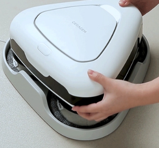 습식 청소를 위해서는 패키지에 포함된 습식 패드를 사용해야 합니다. 습식 패드를 크레들에 올려두고 세라봇 위에 올려 부착하는 방식이 가장 효과적입니다.
